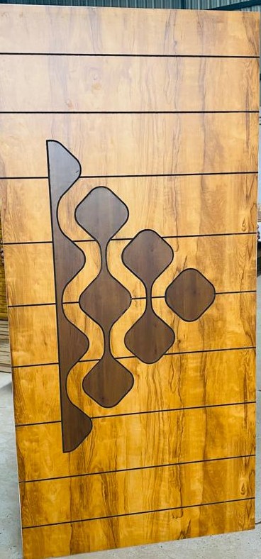 Premium laminated designer pine wood door with strong core, modern finish, bend resistance, and termite protection—perfect for stylish, durable interiors in homes and commercial spaces.